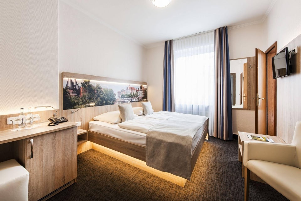 Hotel Jensen se encuentra en el área de Centro histórico de Lübeck en Lübeck, cerca de una estación de tren y en un río. Museum Holstentor y Museo Theater Figuren son lugares culturales destacados, y algunos de los lugares cercanos donde se pueden hacer actividades incluyen Puerto de transbordadores de Travemuende y Reserva natural de Wakenitz. También vale la pena conocer Museo de Naturaleza y Medio Ambiente y Pueblo de Aventuras de Karl - Warnsdorf. Dedica un tiempo a las opciones de spas o centros de bienestar y belleza de la zona o sube la adrenalina haciendo paseos a pie o ciclismo en senderos en los alrededores. Este hotel para no fumadores cuenta con un área con computadoras, check-out exprés y una caja de seguridad en la recepción. El acceso a wifi en las áreas comunes es gratuito. También dispone de personal multilingüe. Hotel Jensen tiene 42 opciones de hospedaje con minibar y caja de seguridad. Hay disponible televisión de pantalla plana con canales por cable. Este hotel en Lübeck ofrece acceso a wifi gratis con una velocidad de 100+ Mbps (ideal para 1 o 2 personas o hasta 6 dispositivos). Entre las comodidades especialmente pensadas para las personas en viaje de negocios se incluyen escritorio, impresora y teléfono. Las habitaciones también incluyen secadora de cabello y cortinas blackout. Se ofrece servicio de limpieza todos los días y es posible solicitar ropa de cama hipoalergénica. Las siguientes actividades de recreación se pueden practicar en la propiedad o en los alrededores. Es posible que apliquen cargos.
