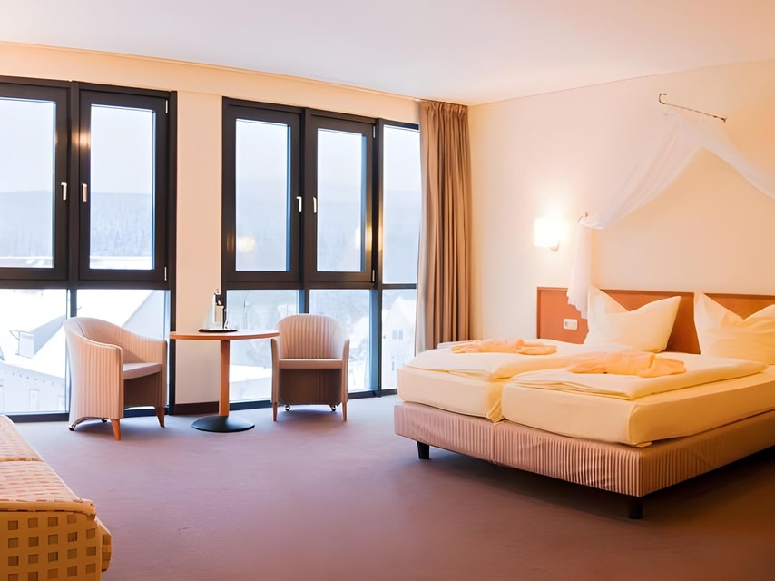 REGIOHOTEL Am Brocken se encuentra en el campo y en la montaña, en Wernigerode. Las personas que deseen hacer una actividad pueden ir a Wurmberg Gondola y Wurmberg, mientras que quienes quieran apreciar la belleza natural del área pueden visitar Parque nacional de Harz y Cueva de estalagmitas Baumannshöhle en Rübeland. No te pierdas Pullman City Harz. Disfruta de las montañas con lugares para hacer ski cross-country y lugares para hacer ski alpino, y aprovecha para practicar actividades como paseos con raquetas de nieve y patinaje sobre hielo. Hotel con spa de servicio completo cerca de Parque nacional de Harz Este hotel cuenta con un spa de servicio completo, un sauna y servicios de spa. También se ofrecen wifi gratis en las áreas comunes y estacionamiento gratis. También dispone de salas de conferencias, check-out exprés y periódicos gratis. REGIOHOTEL Am Brocken tiene 29 opciones de hospedaje con agua embotellada de cortesía y secadora de cabello. Estas opciones de hospedaje tienen área de descanso independiente. Las camas tienen colchones pillow-top y ropa de cama de alta calidad. Hay televisión de pantalla plana de 17 pulgadas con canales vía satélite. Los baños están equipados con tina o regadera. Los huéspedes pueden navegar en línea gracias al acceso a wifi gratis. Los servicios para las personas que viajan por negocios incluyen escritorio y teléfono. Se ofrece servicio de limpieza todos los días y es posible solicitar ropa de cama hipoalergénica. Las alternativas de recreación en este hotel incluyen sauna. Las siguientes actividades de recreación se pueden practicar en la propiedad o en los alrededores. Es posible que apliquen cargos.