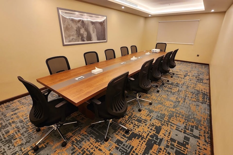 Platinum Hotel se encuentra en la zona centro y cerca de la playa, en Yanbu. Aquellos que deseen ir de compras pueden visitar Mercados Abu Moala y Town Mall, mientras que quienes quieran apreciar la belleza natural del área pueden ir a Mar Rojo y Corniche de Yanbu. Además de una alberca techada, este hotel tiene un restaurante y un centro de conferencias. También se ofrecen wifi gratis en las áreas comunes, estacionamiento gratis y una recepción de cortesía organizada por la dirección. También dispone de una cafetería, café o té en las áreas comunes y salas de conferencias. Es posible solicitar un cambio de toallas. Platinum Hotel tiene 65 opciones de hospedaje con aire acondicionado, minibar (con algunos artículos gratuitos) y agua embotellada de cortesía. Las unidades tienen área de descanso independiente e incluyen sillón cama. Las camas tienen colchones pillow-top. Hay televisión LED de 50 pulgadas con canales digitales, películas con cargo y Netflix. Los baños están equipados con regadera tipo lluvia, pantuflas, amenidades de baño de diseñador y bidet. Este hotel en Yanbu ofrece acceso a wifi gratis. Los servicios para las personas que viajan por negocios incluyen silla de escritorio y teléfono. Las habitaciones también incluyen secadora de cabello y amenidades de baño gratuitas. Es posible solicitar cambio de toallas y cambio de sábanas. Se proporciona servicio de limpieza todos los días. La propiedad cuenta con una alberca techada y chapoteadero.