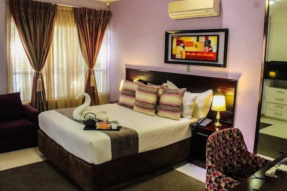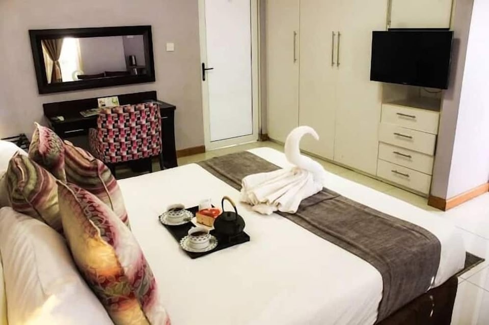 Cycad Palm Hotel se encuentra en el centro financiero de Serowe. Los puntos de interés locales incluyen Khama III Memorial Museum, Royal Cemetery y Estadio Serowe. Este hotel para no fumadores cuenta con un restaurante, una terraza en la azotea y servicio de tintorería. También se ofrecen wifi gratis en las áreas comunes y estacionamiento gratis. También dispone de lavandería en las instalaciones, servicio de recepción las 24 horas y un jardín. Cycad Palm Hotel tiene 6 opciones de hospedaje con aire acondicionado, agua embotellada de cortesía y amenidades de baño gratuitas. Estas opciones de hospedaje con mobiliario y decoración diferentes disponen de escritorio. Las camas están equipadas con ropa de cama de alta calidad. Todas las habitaciones disponen de televisión LCD. Los baños están equipados con tina con regadera con tina profunda. Los huéspedes pueden navegar en línea gracias al acceso a wifi gratis. Se ofrece servicio de limpieza todos los días y es posible solicitar tabla de planchar con plancha.