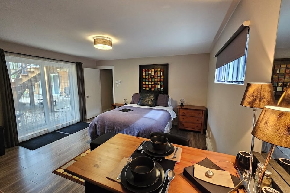 Le DEN de Tremblant se encuentra en la montaña y cerca del malecón, en Mont-Tremblant. Las personas que deseen hacer una actividad pueden visitar Spa Scandinave Spa Mont-Tremblant y Centro de actividades de Mont-Tremblant, mientras que quienes quieran apreciar la belleza natural del área pueden ir a Parque Nacional de Mont Tremblant. ¿Quieres asistir a un evento o partido mientras estás aquí? Échale un vistazo al calendario de actividades de Circuito Mont-Tremblant. Bed & breakfast con desayuno incluido cerca de Spa Scandinave Spa Mont-Tremblant Este bed and breakfast para no fumadores cuenta con una tina de hidromasaje, servicio de concierge y un jardín. También se ofrecen desayuno continental incluido, wifi gratis en las áreas comunes y estacionamiento gratis. También dispone de un lobby con chimenea y personal multilingüe. El servicio de limpieza no está disponible. Le DEN de Tremblant ofrece 3 opciones de hospedaje con acceso por pasillos exteriores, agua embotellada de cortesía y cafetera y tetera. Cada hospedaje tiene un mobiliario y decoración diferentes. Las camas están equipadas con ropa de cama de alta calidad. Cabe destacar que esta propiedad permite a sus clientes elegir el tipo de almohada. Se ofrecen refrigerador y microondas. Los baños están equipados con regadera y batas. Este bed and breakfast en Mont-Tremblant ofrece acceso a wifi gratis. Hay disponible televisión de pantalla plana con canales por cable. Las alternativas de recreación en este bed and breakfast incluyen tina de hidromasaje. Los huéspedes menores de 18 años no pueden acceder al siguiente servicio: tina de hidromasaje.