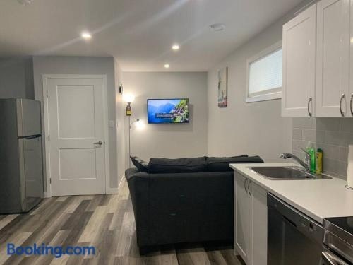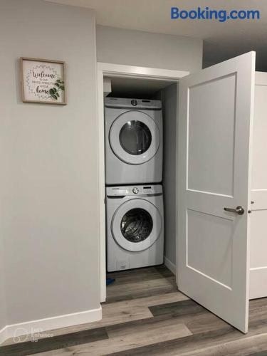 Guest Suite in Regina - Queen Bed is situated in Regina. With free WiFi, this 1-bedroom apartment features a flat-screen TV, a washing machine and a fully equipped kitchen with a dishwasher and oven. Towels and bed linen are offered in the apartment.