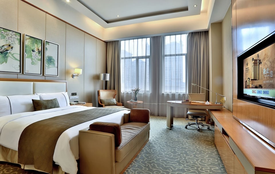 The Shimao Hotel (Shimao Dafandian) is a landmark building in Lanxi about a ten-minute drive from the Lanxi railway station on Lanxi Avenue. This five-star hotel serves both Chinese and Western cuisines. The bar proves to be a nice venue to enjoy drinks while catching up with friends.Events planners are invited to make full use of the on-site business center and meeting facilities. The hotel features a tea house, bar and flower shop for guests looking for entertainment options.