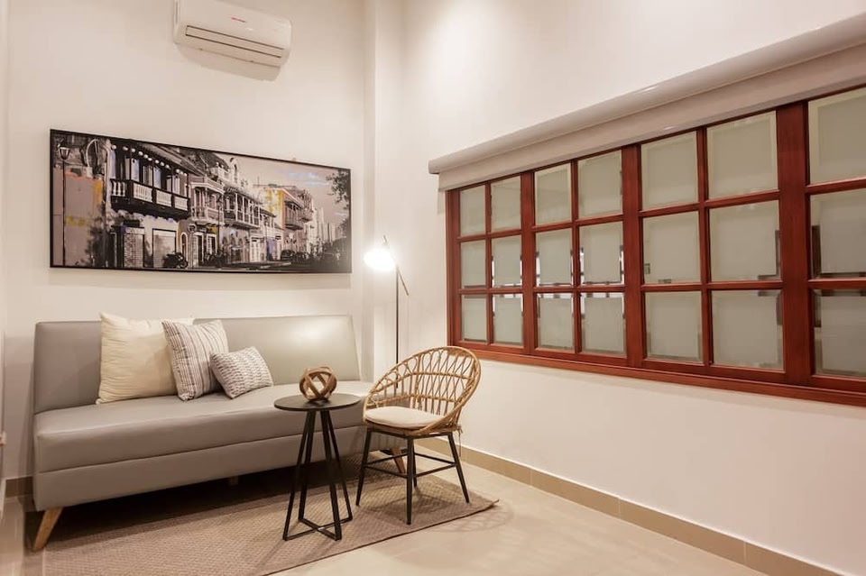 Ganem Suites Cartagena se encuentra en el área de Ciudad amurallada de Cartagena en Cartagena, cerca del aeropuerto y cerca de la playa. Museo del Oro de Cartagena y Palacio de la Inquisicion son lugares culturales destacados, y algunos de los puntos de interés del área incluyen Museo Naval del Caribe y Cartagena Botanical Garden "Guillermo Piñeres". ¿Quieres asistir a un evento o partido mientras estás en la ciudad? Consulta el calendario de Campo Softball Nuevo Bosque o Estado de sóftbol de Chiquinquira. Las actividades como snorkel, paseos en botes de motor y clases de surf ofrecen una gran oportunidad de disfrutar del agua y, si buscas un poco de adrenalina, puedes hacer tours ecológicos en los alrededores. Hotel de estilo colonial en Cartagena Este hotel para no fumadores cuenta con una sala de estar compartida, botones y un cajero automático o servicios bancarios. El acceso a wifi en las áreas comunes es gratuito. También dispone de personal multilingüe y una máquina expendedora. Ganem Suites Cartagena tiene 28 opciones de hospedaje con aire acondicionado, caja de seguridad y cafetera y tetera. Cada hospedaje tiene un mobiliario y decoración diferentes. Hay Smart TV de 50 pulgadas con canales digitales. Los baños están equipados con regadera y secadora de cabello. Este hotel en Cartagena ofrece acceso a wifi gratis con una velocidad de 250+ Mbps (ideal para 3 a 5 personas o hasta 10 dispositivos). Se ofrece servicio de limpieza todos los días y es posible solicitar ropa de cama hipoalergénica. Las siguientes actividades de recreación se pueden practicar en la propiedad o en los alrededores. Es posible que apliquen cargos.