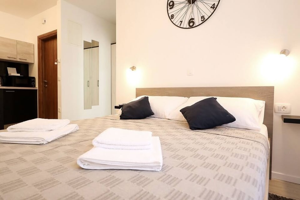 Pyrotima Apartments se encuentra cerca de la playa, en Ciudad antigua de Zadar, Zadar. Museo de figuras antiguas de vidrio y Museo etnológico de Zadar son lugares culturales destacados, y algunos de los sitios emblemáticos del área incluyen Palacio de Knezeva y Trg Pet Bunara (plaza). ¿Quieres asistir a un evento o partido mientras estás en la ciudad? Consulta el calendario de Estadio Stanovi, o puedes salir una noche a Arsenal Zadar. Casa de huéspedes en ZadarEsta casa de huéspedes para no fumadores ofrece wifi gratis en las áreas comunes. Se incluye un servicio de limpieza con previa solicitud. Pyrotima Apartments tiene 3 opciones de hospedaje con aire acondicionado, agua embotellada de cortesía y secadora de cabello. Hay disponible Smart TV con canales vía satélite. Los baños están equipados con regadera. Esta casa de huéspedes en Zadar ofrece acceso a wifi gratis. Es posible solicitar ropa de cama hipoalergénica y tabla de planchar con plancha. Se proporciona servicio de limpieza previa solicitud.