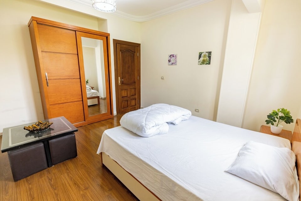 este departamento se encuentra en Maadi, El Cairo. Museo Egipcio y Gran Museo Egipcio son lugares culturales destacados, y algunos de los puntos de interés más importantes de la zona incluyen Sitio arqueológico Necrópolis de Guiza y Esfinge de Gizeh. ¿Quieres asistir a un evento o partido mientras estás en la ciudad? Consulta el calendario de Club Deportivo Al-Ahly o Estadio Internacional de El Cairo. Este departamento de ambiente acogedor en El Cairo te permite experimentarlo todo. Súbete a tu auto y maneja hasta Nilo, que está a solo 4 min, o hasta Wadi Natrun, a 7 min. Recuerda que tienes estacionamiento gratis a tu disposición en la propiedad. Esta renta vacacional de 3 habitaciones y 3 baños cuenta con aire acondicionado y asistencia turística y para la compra de entradas. Aprovecha el acceso a wifi gratis o relájate viendo la televisión digital. También puedes disfrutar de una regadera tipo lluvia, así como otras amenidades de baño, entre ellas, toallas. La cocina está equipada con horno, parrilla de estufa y refrigerador con congelador, así como microondas, utensilios de cocina y waflera. Además, hay una lavadora, así que puedes viajar más ligero. También encontrarás otras amenidades, como calefacción, armario o clóset y comedor.