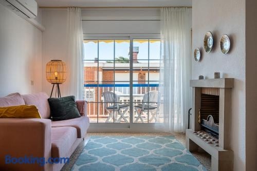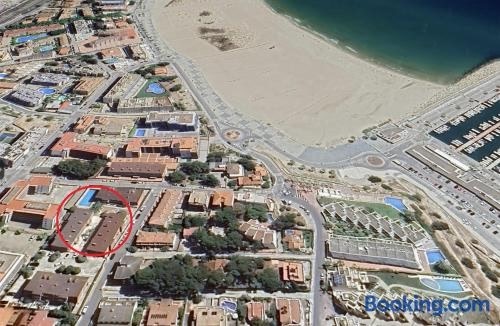 Set in Torredembarra, AT122 Con piscina y airco, 150m de la playa provides accommodation with an outdoor pool. This property offers access to a terrace, mini-golf, free private parking and free WiFi.