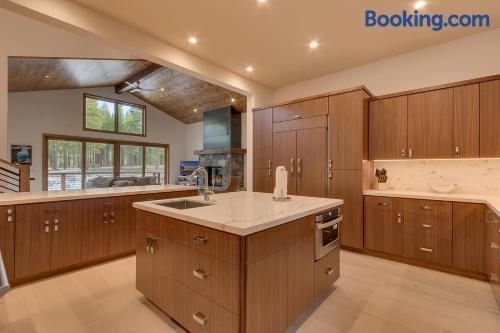 Situated in Truckee in the California region, Meek Court at Grays Crossing - Modern Luxury with Private Hot Tub has a balcony. Guests staying at this holiday home have access to a patio.