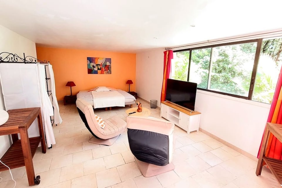 La Devinière se encuentra en Donzere. Aquellos que deseen hacer una actividad pueden ir a Le Dôme Par Clémentine Winery y Cave de Saint-Montan, mientras que quienes deseen conocer los puntos de interés del área pueden optar por Zoológico La Ferme aux Crocodiles y Museo Internacional de Dulces. En la zona, puedes practicar actividades como kayaks y pesca, o disfrutar del aire libre mientras haces escalada en roca y ciclismo. Casa de huéspedes solo para adultos con desayuno incluido y alberca al aire libre Esta casa de huéspedes para no fumadores ofrece una alberca al aire libre, una cancha de tenis al aire libre y un jardín. También se ofrecen wifi gratis en las áreas comunes y estacionamiento gratis. También dispone de desayuno incluido y personal multilingüe. El servicio de limpieza no está disponible. La Devinière tiene 4 opciones de hospedaje. Las alternativas de recreación en esta casa de huéspedes incluyen cancha de tenis al aire libre y alberca al aire libre. Las siguientes actividades de recreación se pueden practicar en la propiedad o en los alrededores. Es posible que apliquen cargos.