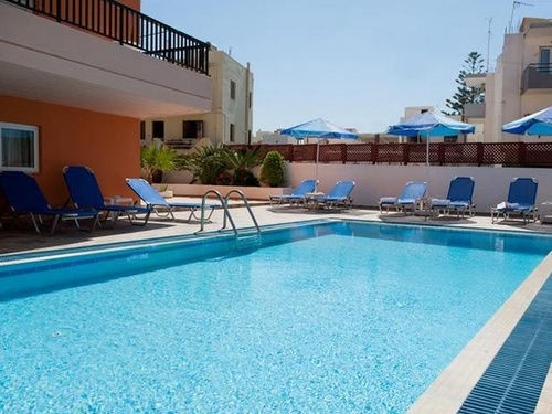 The hotel offers following facilities and services bar, swimming pool, elevator, garden, parking, room service, Internet corner and WiFi. All rooms have air conditioning (extra charge), TV, telephone, equipped kitchenette, fridge, coffee and tea making facilities, WiFi, safety box (extra charge) and balcony or terrace. ** Important: Reception with limited opening hours. When booking this hotel you are requested to advise your flight number and arrival time.** Address: 74100 Sotiri Petroula 11 & Kalogeraki, Rethymno, Crete, Greece.