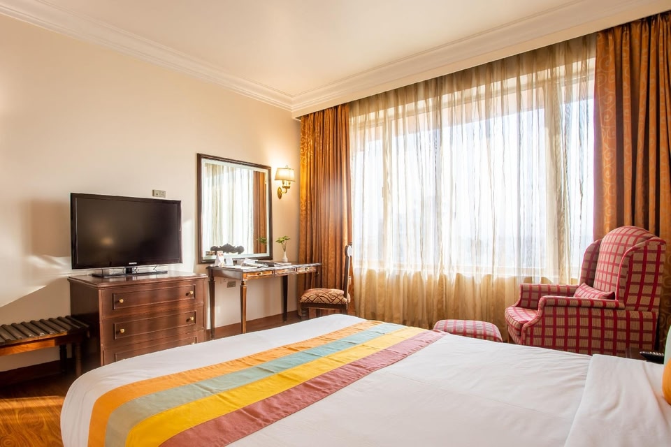 The Everest Hotel Kathmandu se encuentra en New Baneshwor, una zona con acceso fácil a un centro comercial. Los lugares emblemáticos de la zona incluyen Templo Pashupatinath y Boudhanath (monasterio budista). También vale la pena conocer Zoo de Patan y Natural History Museum. Este hotel ofrece un spa de servicio completo, una alberca al aire libre y un restaurante. También se ofrecen wifi gratis en las áreas comunes y valet parking gratis. Además, la propiedad dispone de una sala de fitness, un bar o lounge y un bar junto a la alberca. The Everest Hotel Kathmandu ofrece 160 opciones de hospedaje compartido con acceso por pasillos exteriores, chimenea y minibar. Cada hospedaje tiene un mobiliario y decoración diferentes. Las camas están equipadas con sábanas de algodón egipcio y ropa de cama de alta calidad. Hay televisión LED de 40 pulgadas con canales por cable premium. Los baños están equipados con tina o regadera, batas, pantuflas y bidet. Los huéspedes pueden navegar en línea gracias al acceso a wifi gratis. Los servicios para las personas que viajan por negocios incluyen escritorio, periódicos gratis y caja de seguridad. Las habitaciones también incluyen agua embotellada de cortesía y secadora de cabello. Se ofrece servicio nocturno de cortesía y servicio de limpieza todos los días. Es posible solicitar tabla de planchar con plancha. La propiedad cuenta con una alberca al aire libre y chapoteadero. Otras alternativas de esparcimiento incluyen sala de fitness. Los niños menores de 12 años no pueden acceder a las siguientes instalaciones sin la supervisión de un adulto: alberca y sala de fitness.