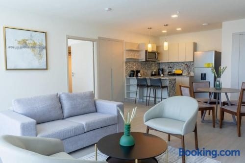 Featuring air-conditioned accommodation with a balcony, Chic 1-Bedroom Overlooking the Pacific in Panama City is located in Panama City. Guests can go for a swim in the private pool.
