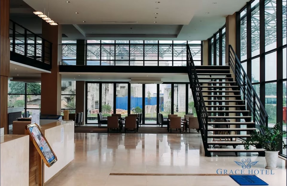 Grace Hotel se encuentra en Pho Yen. La belleza natural del área puede apreciarse en Parque Nacional Tam Dao y Lago Nui Coc, mientras que Centro cultural Kinh Bac y Museo de Bac Ninh son lugares culturales destacados. Hotel en Pho Yen con spa de servicio completo y desayuno incluido Este hotel cuenta con un spa de servicio completo, un restaurante y un bar o lounge. También se ofrecen desayuno buffet incluido, wifi gratis en las áreas comunes y estacionamiento gratis. También dispone de un microondas en un área común, lavandería en las instalaciones y servicio de recepción las 24 horas. Es posible solicitar un cambio de toallas. Grace Hotel ofrece 114 opciones de hospedaje con acceso por pasillos exteriores, chimenea y caja de seguridad. Las camas tienen colchones con efecto memoria, edredón de plumas y ropa de cama de alta calidad. Cabe destacar que esta propiedad permite a sus clientes elegir el tipo de almohada. Hay Smart TV de 42 pulgadas con canales vía satélite premium. Los baños están equipados con regadera con regadera tipo lluvia y regadera con hidromasaje, batas, pantuflas y amenidades de baño de diseñador. Los huéspedes pueden navegar en línea gracias al acceso a wifi gratis con una velocidad de 100+ Mbps (ideal para 1 o 2 personas o hasta 6 dispositivos). Los servicios para personas de negocios incluyen escritorio y silla de escritorio. Las habitaciones también incluyen agua embotellada de cortesía y secadora de cabello. Se ofrece servicio nocturno de cortesía y servicio de limpieza todos los días. Es posible solicitar cambio de toallas.