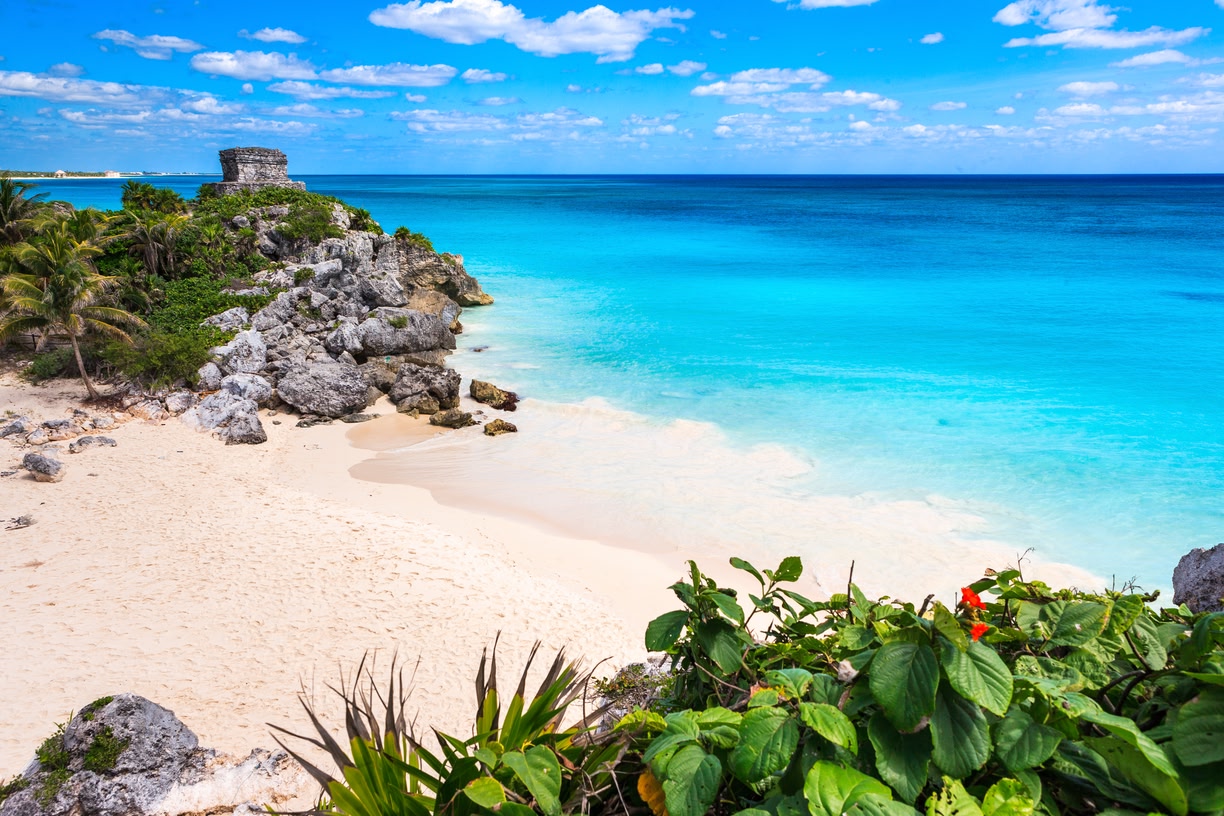 Situada en la península de Yucatán a orillas del mar Caribe, Tulum posee la única zona arqueológica del país que se encuentra junto a la playa. Los mayas construyeron sobre un acantilado lo que fue una de sus ciudades más ricas y que hoy representa uno de los mayores atractivos de la zona.